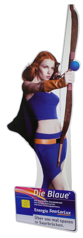 In Lebensgröße mit Konturschnitt – auffällig – stabil – langlebig. Beim Transport werden die Pappkameraden auf halbe Größe zusammengeklappt. Rückseitig mit einer aufgeklebten faltbaren Rückenstütze aus weißer Wellpappe ausgestattet. Frei im Raum stehend.